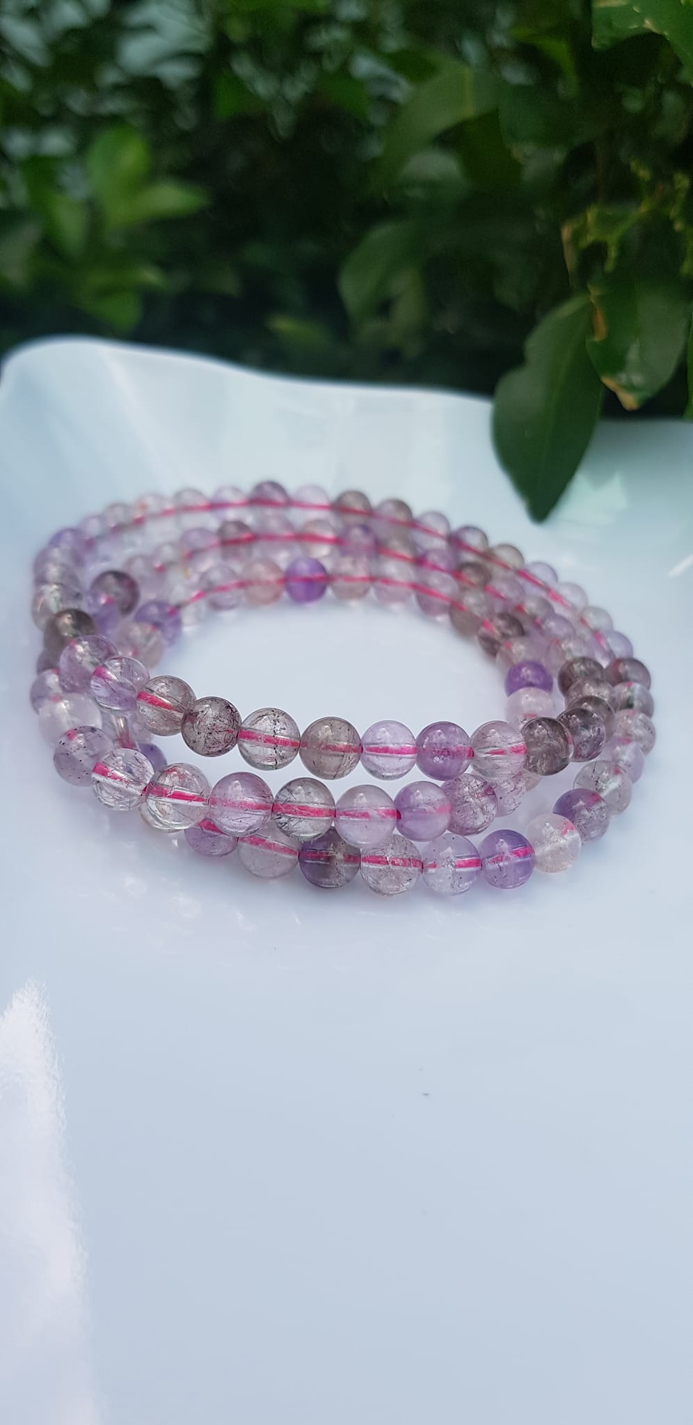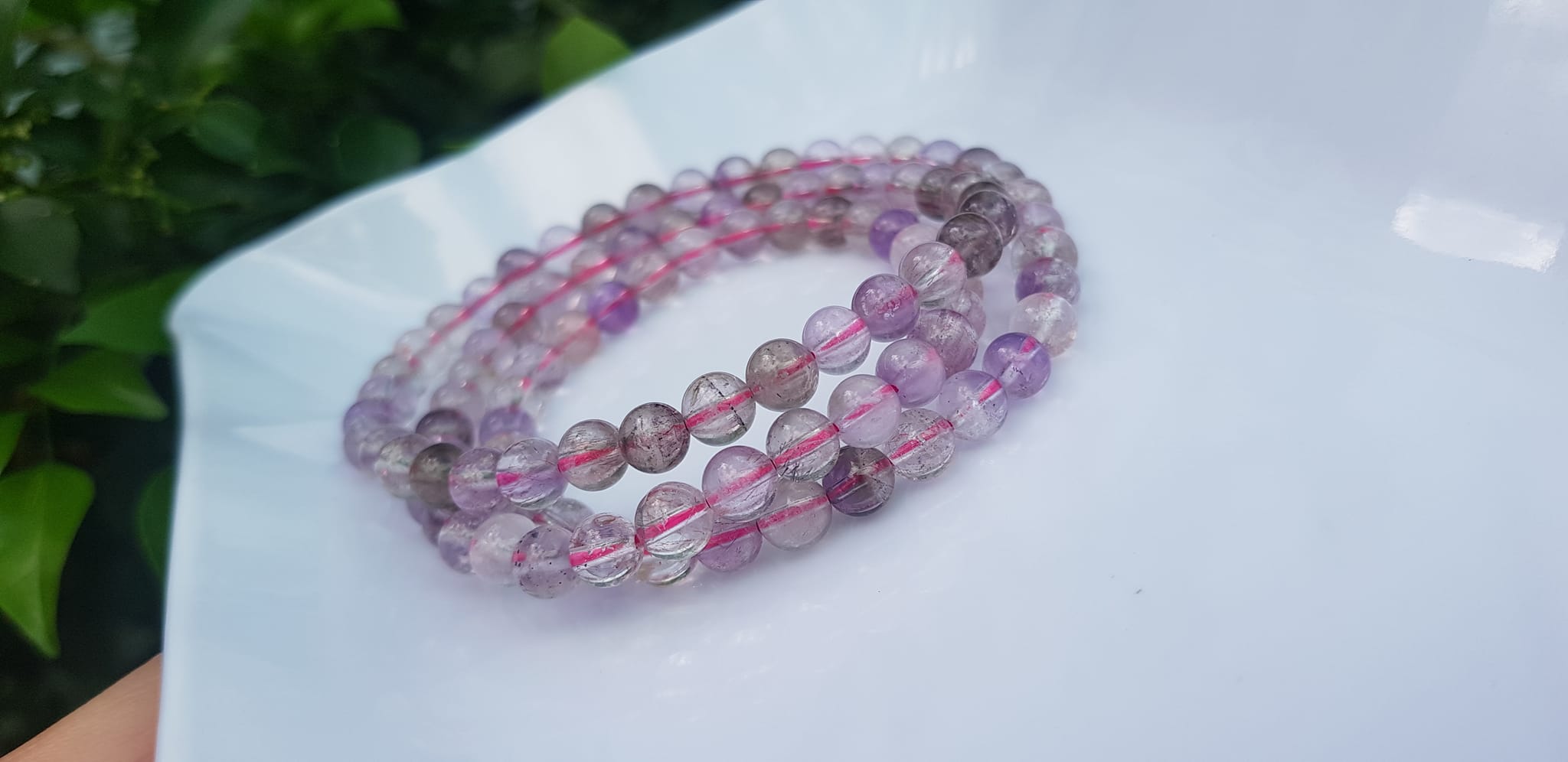 ✨Vòng Tay phong thủy Đá Super Seven tự nhiên bóng đẹp Size vòng hạt 6mm kiểu quấn tay 3 vòng đẹp lắm ạ Super Seven màu tím tím trắng bóng thiệt là đẹp ạ
