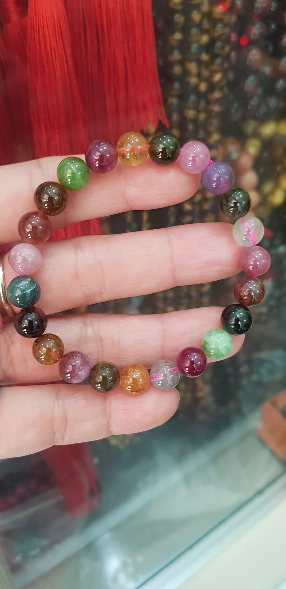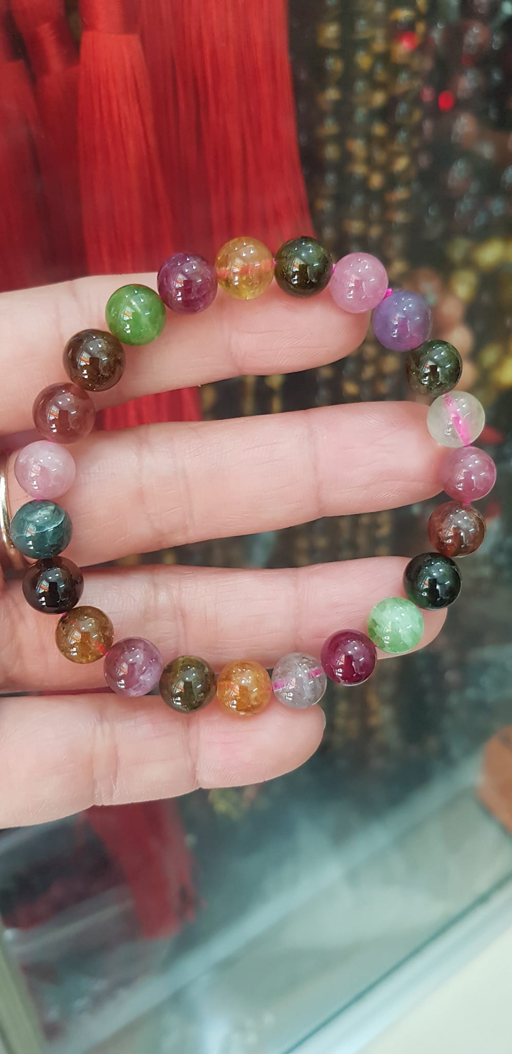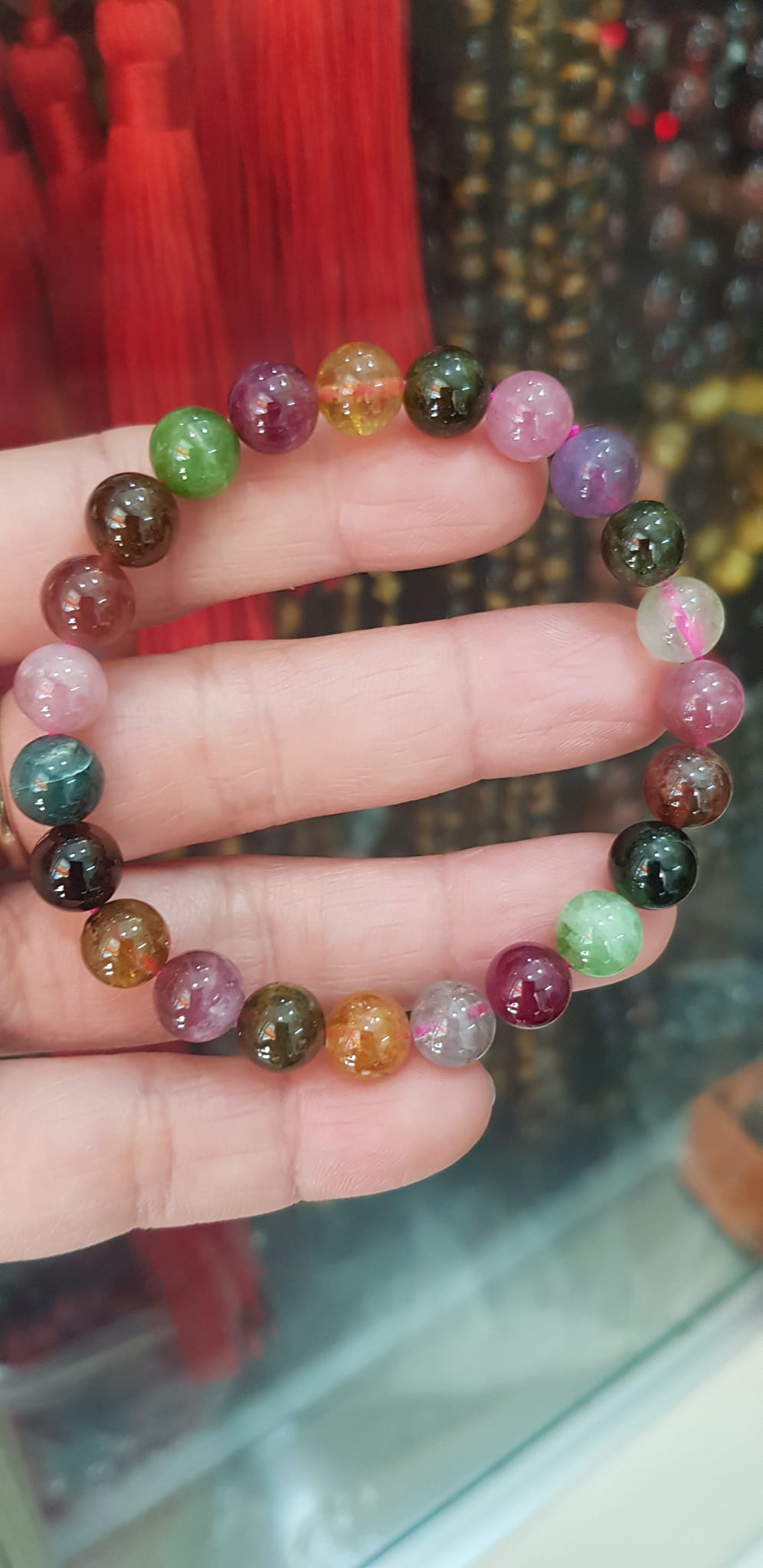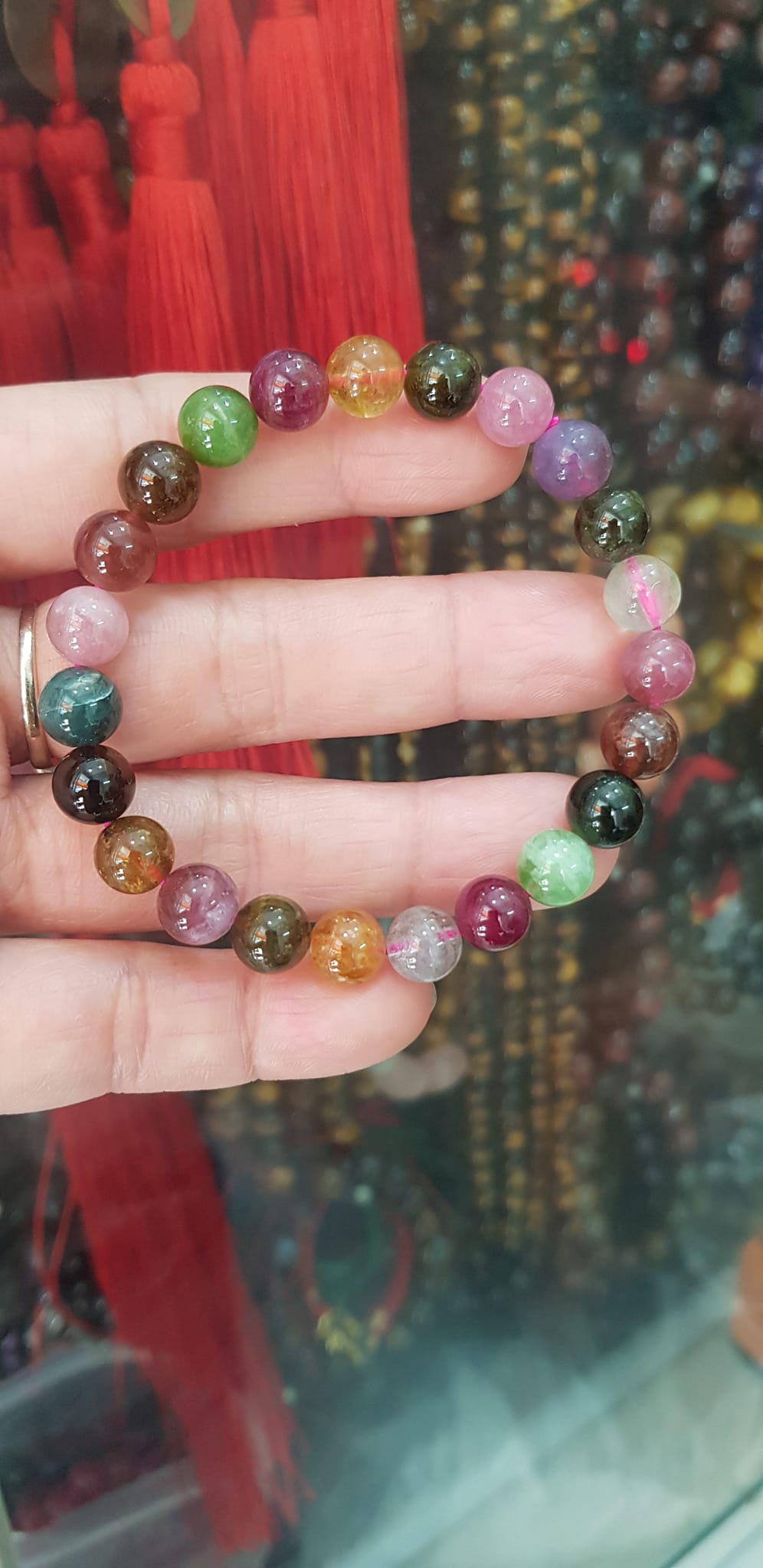 Vòng tay phong thuỷ may mắn đá tourmaline màu bóng đẹp lắm Size hạt vòng 8mm đá tự nhiên Vòng đá tự nhiên đeo tốt sức khoẻ, may mắn, tốt cho công việc đeo lên