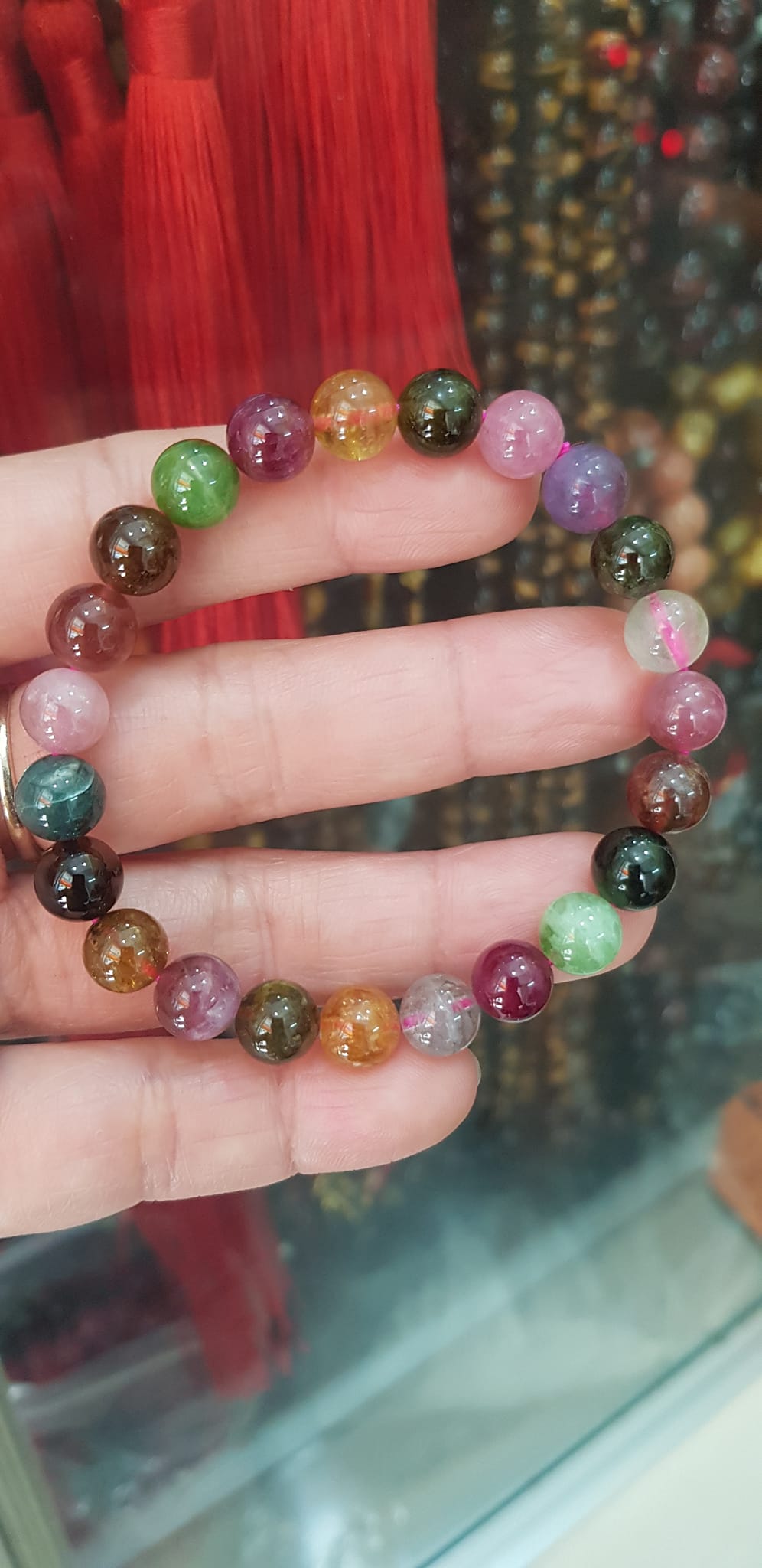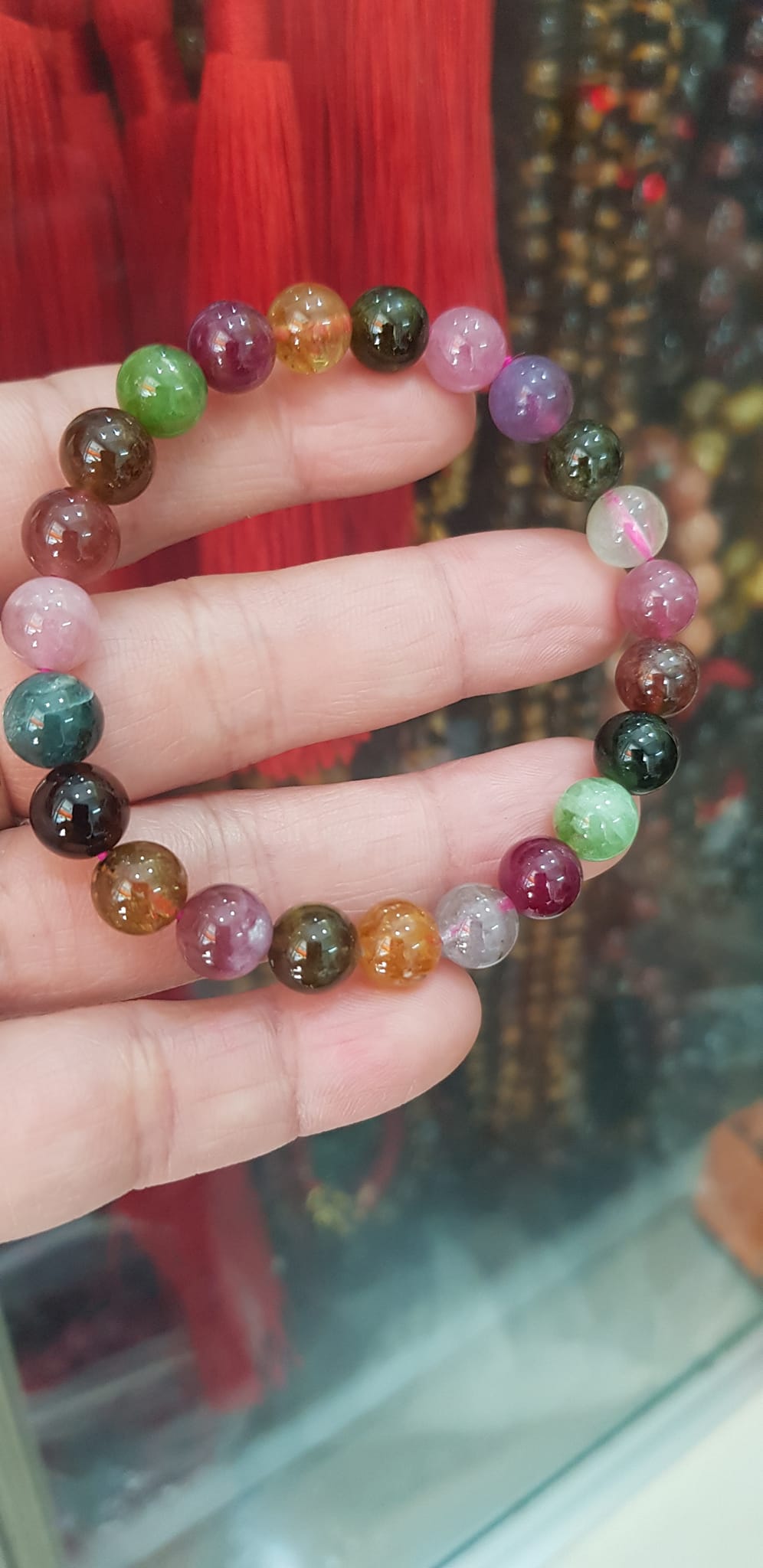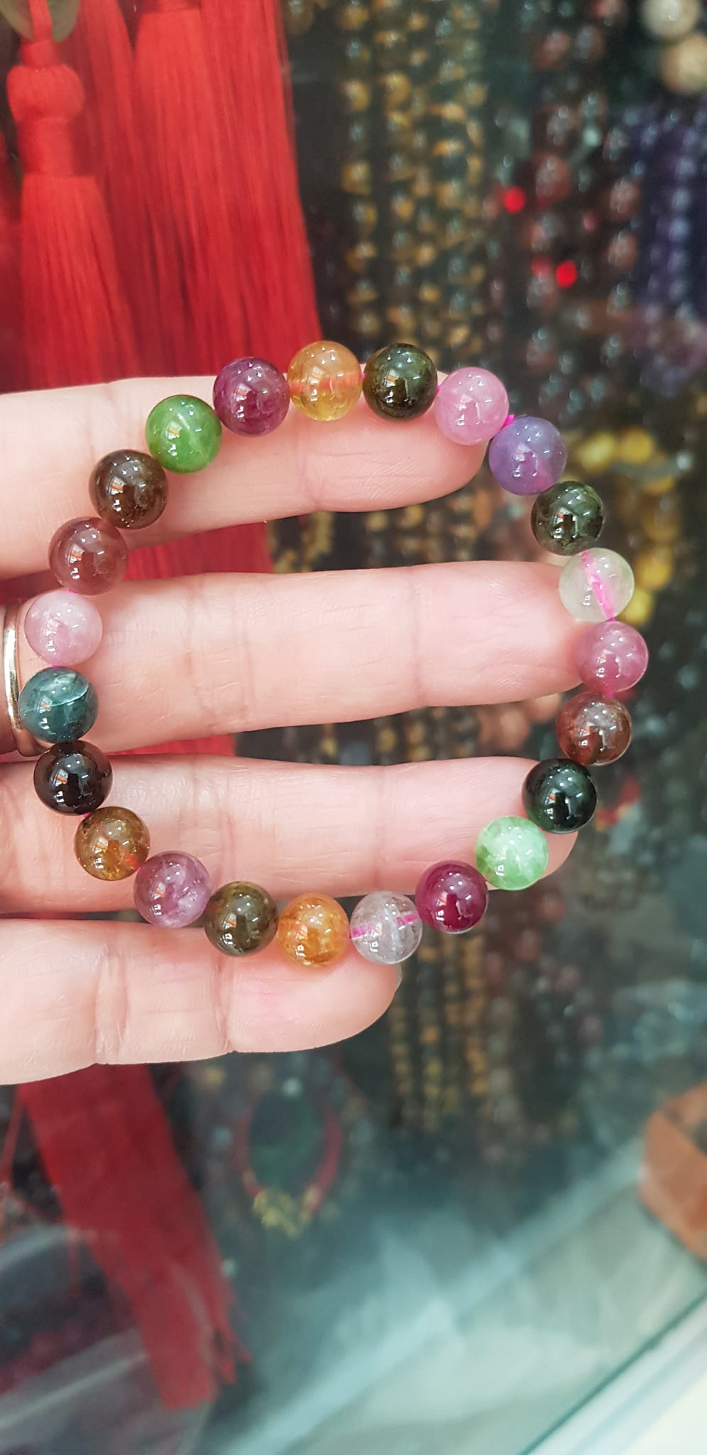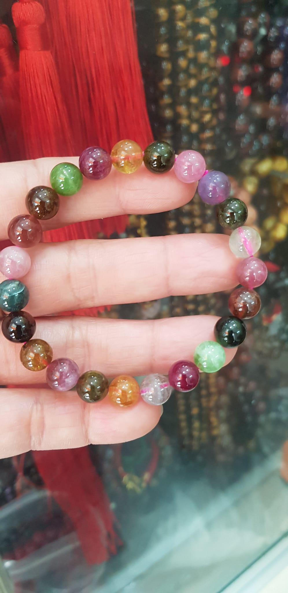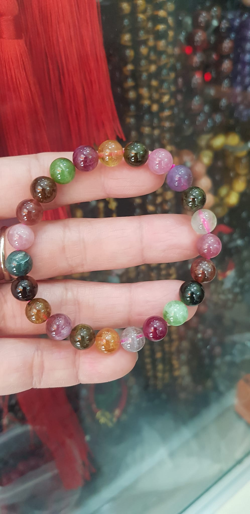 Vòng tay phong thuỷ may mắn đá tourmaline màu bóng đẹp lắm Size hạt vòng 8mm đá tự nhiên Vòng đá tự nhiên đeo tốt sức khoẻ, may mắn, tốt cho công việc đeo lên