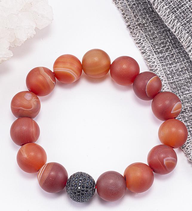Vòng Tay Phong Thủy Nam Đá Mã Não Đỏ Nhám Phối Charm Cầu Đính Đá (14mm) Mệnh Hỏa, Thổ Từ lâu người ta đã biết đến đá Mã não như là tiếng gọi của thiên