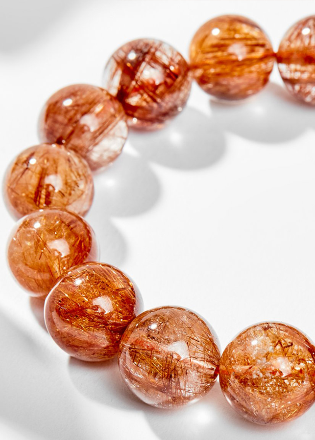 Vòng Tay Phong Thủy Nam Đá Thạch Anh Tóc Đỏ (11mm) Mệnh Hỏa, Thổ