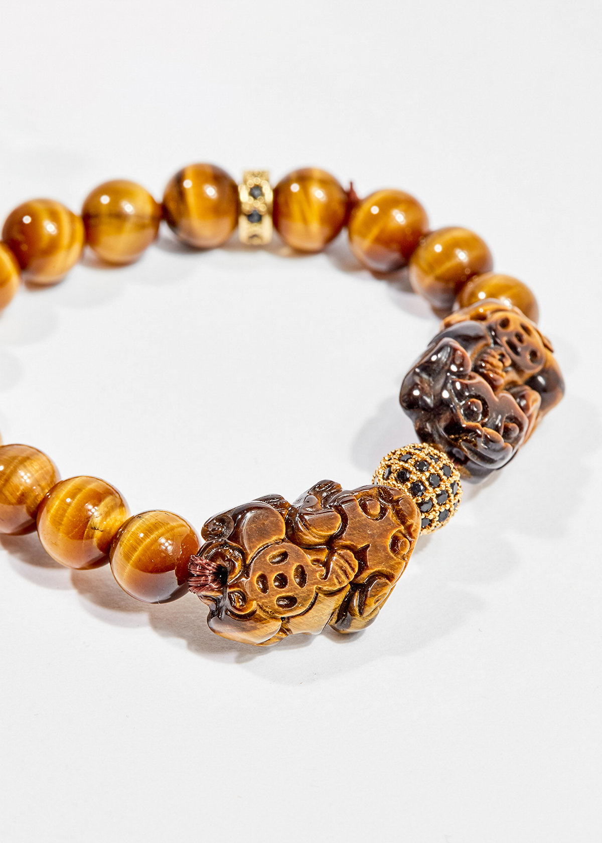 Vòng tay Đá Mắt Hổ Vàng Nâu charm Tì Hưu từ xưa đến nay luôn là một vật phẩm phong thủy được nhiều người tin tưởng, đại diện cho sức mạnh và tài lộc với vẻ đẹp mạnh mẽ và ẩn chứa nguồn năng lượng dương tích cực.