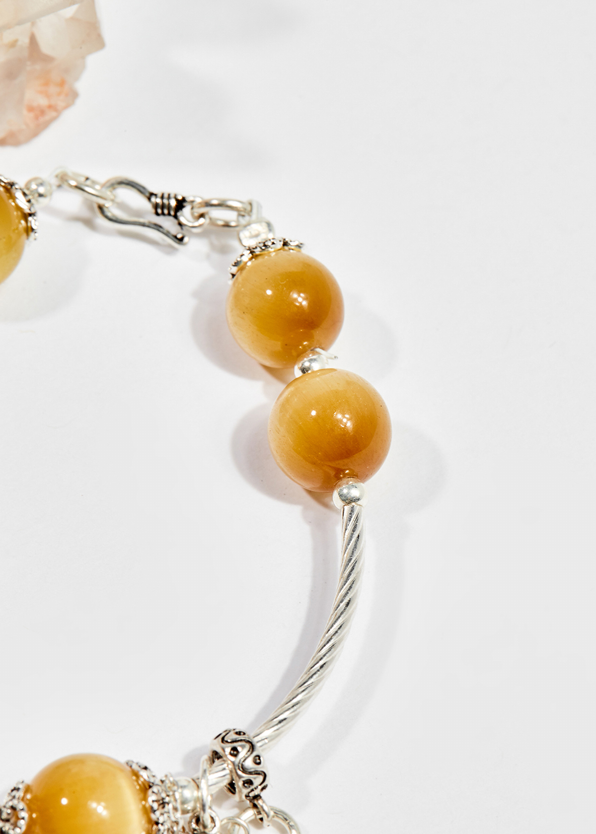 Vòng Tay Phong Thủy Nữ Đá Mắt Hổ Vàng Tâm Phối Charm Hoa Sen Bạc (8mm) Mệnh Thổ, Kim Từ xưa đến nay đá mắt hổ vàng tâm như một viên đá vô cùng tuyệt