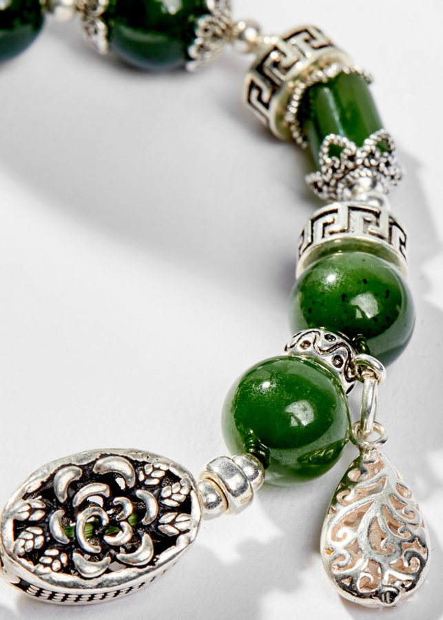 Từ lâu người ta đã biết đến đá Ngọc bích như một viên đá đại diện cho quyền uy Đế Vương, mang màu sắc thanh cao và quý phái. Giúp trấn tà, thu hút may mắn, thành toàn cho ước mơ của chủ nhân. Ngoài ra, đá Ngọc Bích rất có lợi cho sức khỏe của người đeo chúng, lâu dài có thể cải thiên tuổi thọ. Vòng Tay Phong Thủy Nữ Đá Ngọc Bích Phối Charm Hoa Bạc (10mm) Mệnh Mộc, Hỏa được làm từ đá Ngọc bích và là vật phẩm không thể thiếu trong bộ sưu tập đá quý của bạn.
