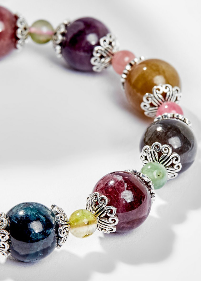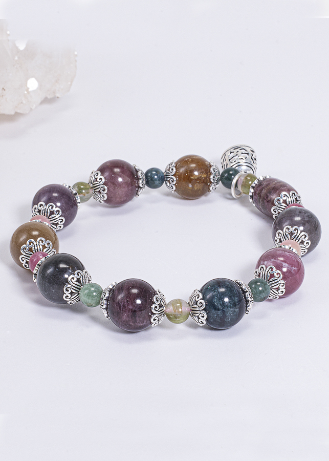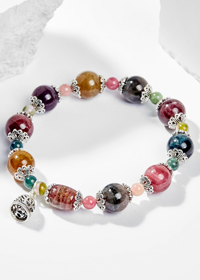 Vòng tay đá tourmaline đa sắc phối charm bạc - Hợp ngũ mệnh | Ngọc Quý Gemstones |