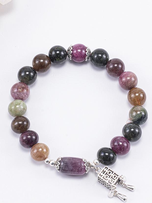 Vòng tay đá tourmaline đa sắc phối charm bạc - Hợp ngũ mệnh | Ngọc Quý Gemstones |