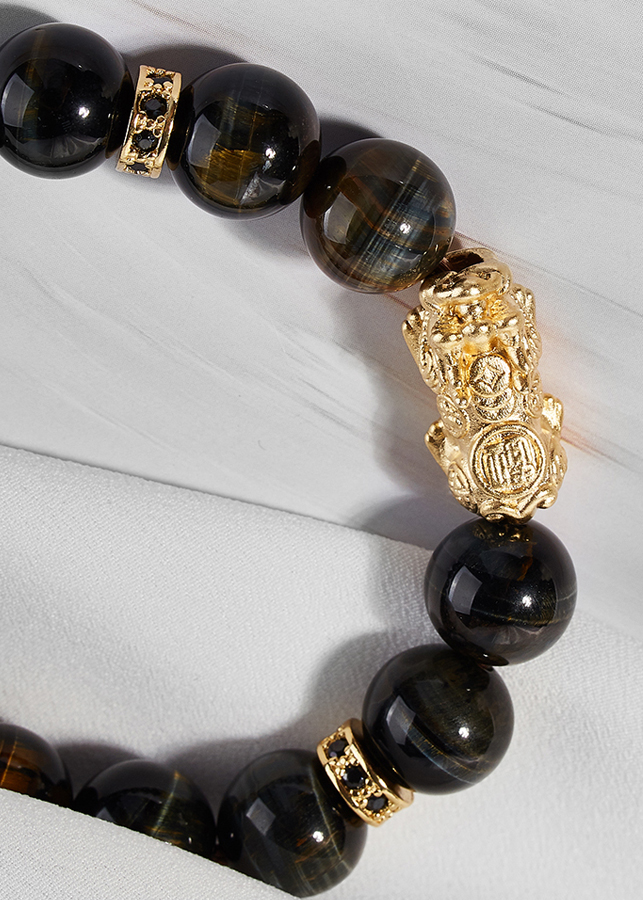 Vòng tay thạch anh mắt hổ phối tỳ hưu bạc mạ vàng 24k Ngọc Quý Gemstone mang trên người có ý nghĩ xua tan phiền não, lo lắng. Ngoài ra nó còn mang mang đến sự lạc quan vui vẻ, hạnh phúc và may mắn.