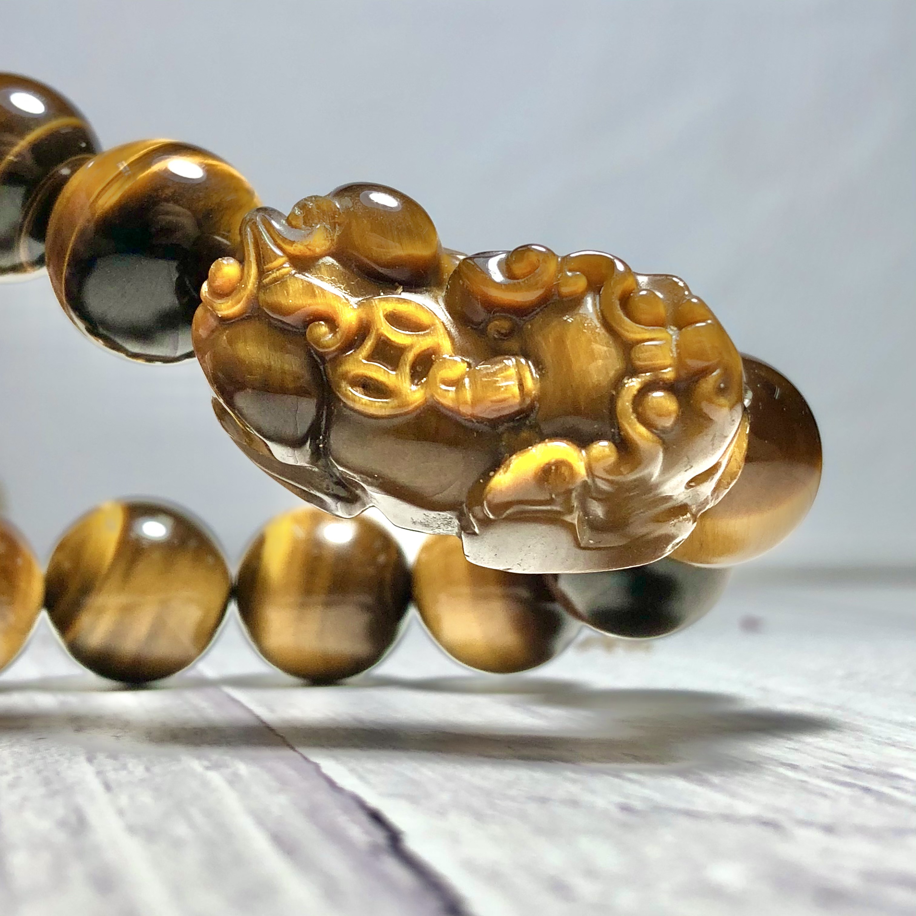 💥Con Tỳ Hưu Đá Mắt Hổ Vàng Nâu Tự Nhiên To Phối Vòng Tay Nam size 14mm, 16mm, 18mm ạ 🤳 SUNNY Q8