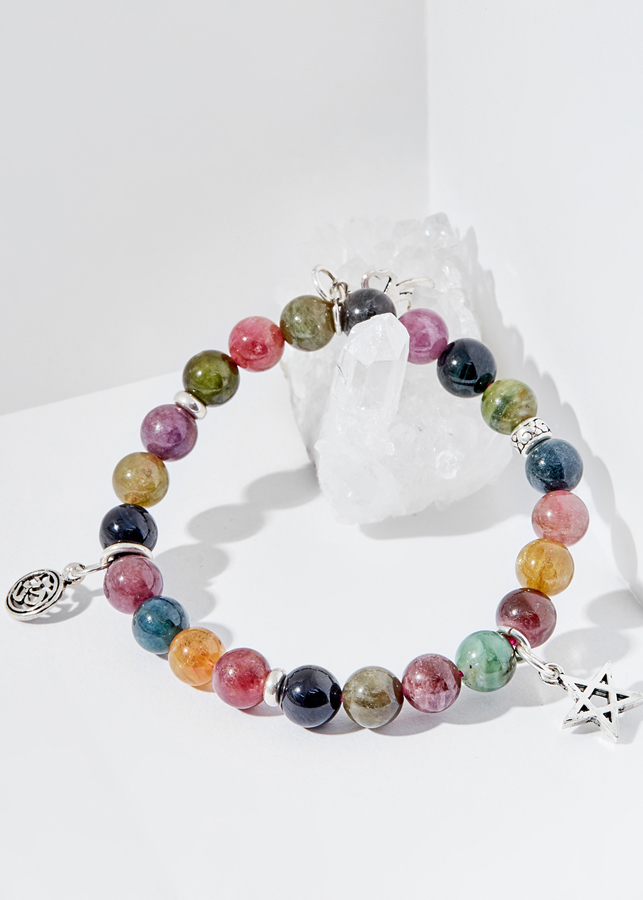 Vòng tay đá tourmaline đa sắc phối charm bạc - Hợp ngũ mệnh | Ngọc Quý Gemstones |