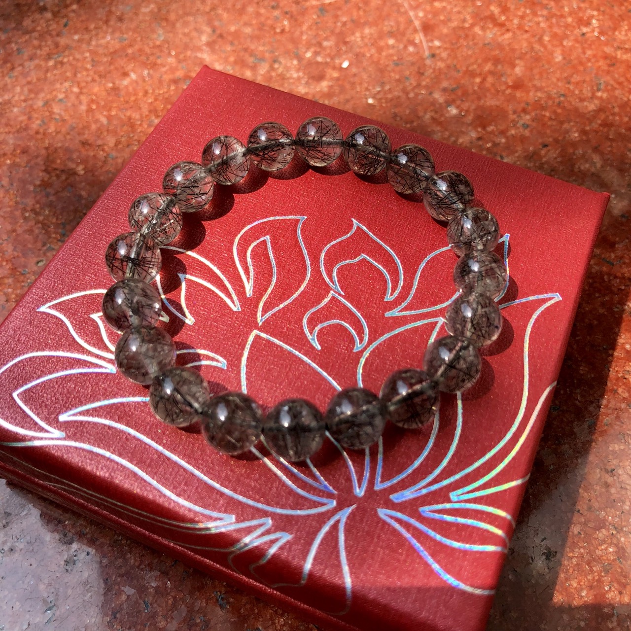 Vòng Tay Phong Thủy THẠCH ANH TÓC ĐEN cho Mệnh Mộc - Thủy