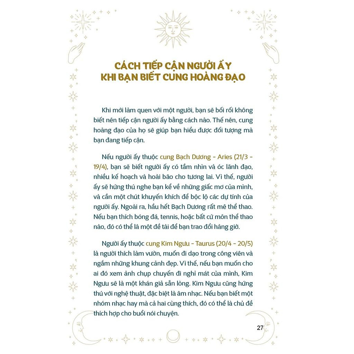 Khi mới làm quen với một người, bạn sẽ bối rối không biết nên tiếp cận như thế nàế nên, cung hoàng đạo của họ sẽ giúp bạn hiểu được đối tượng mà bạn đang tiếp cận.