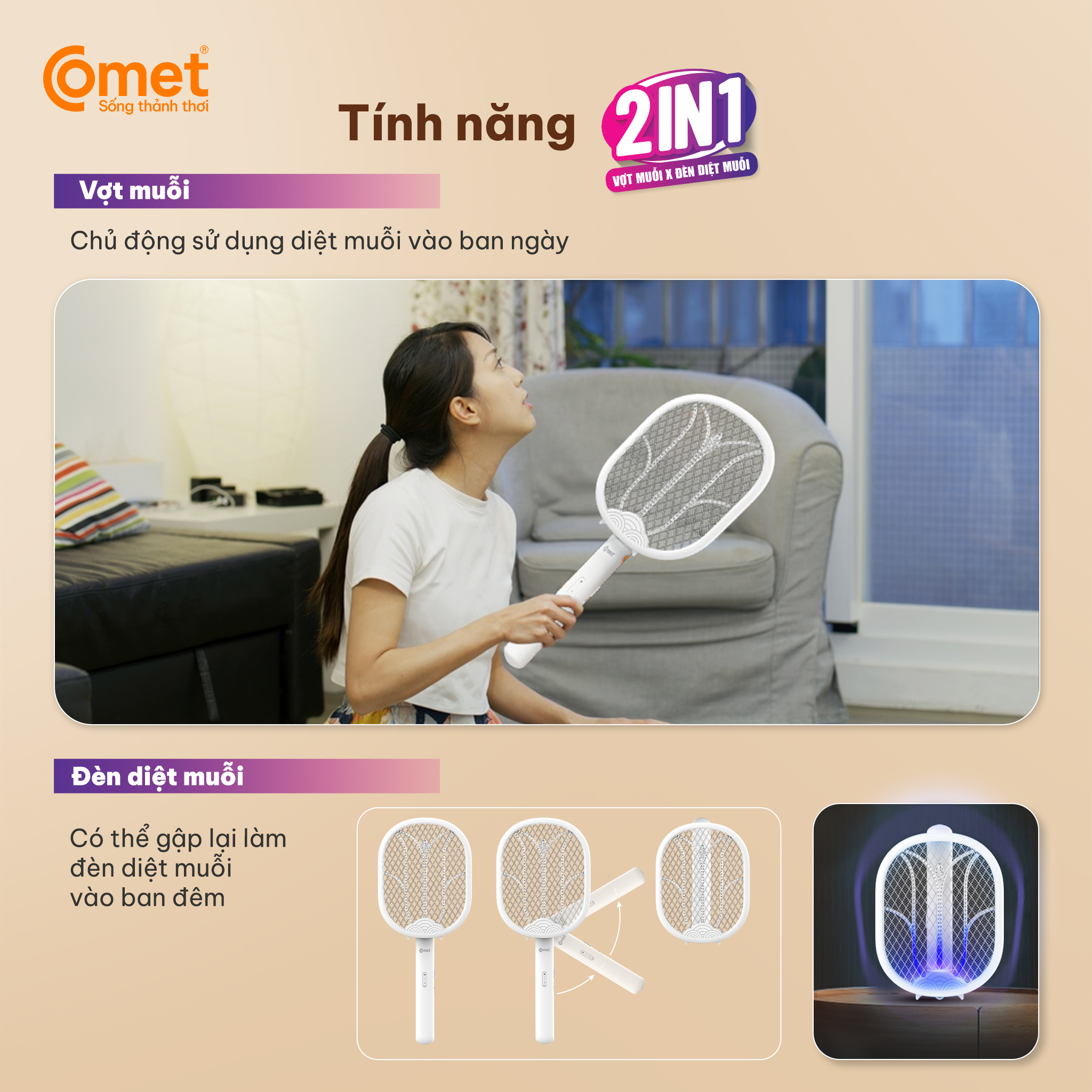 ✨Vợt muỗi điện Comet CP048 Pin Lithium 500mAh sạc 2h dùng 10 ngày BH 12T cổng sạc type C