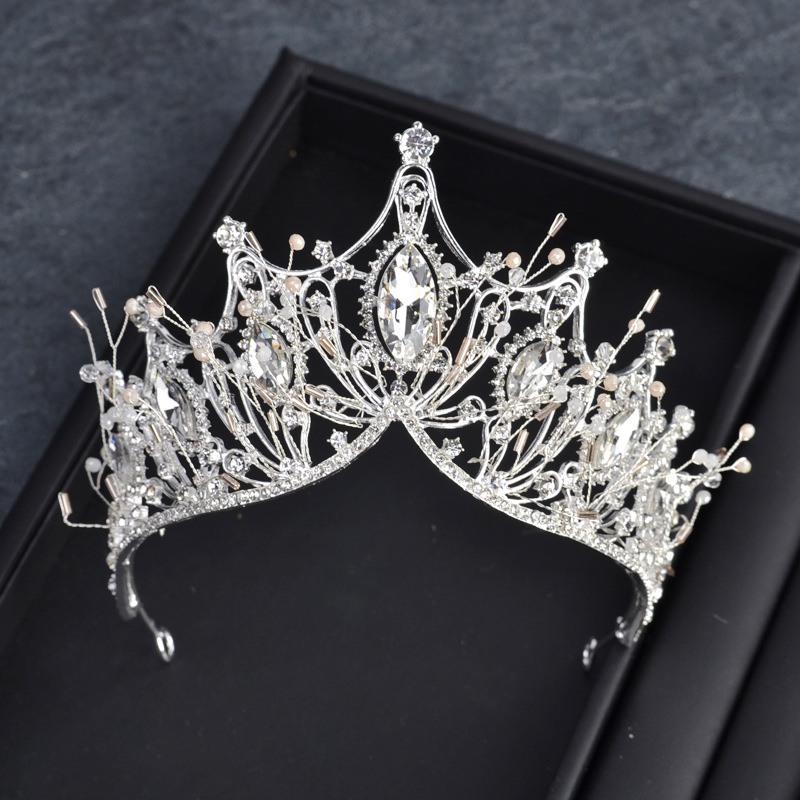 Vương miện cô dâu 7cm đá hạt trai S221338 Chất liệu hợp kim xi mạ đính hạt trai cao cấp Khuôn đúc Gắn đá