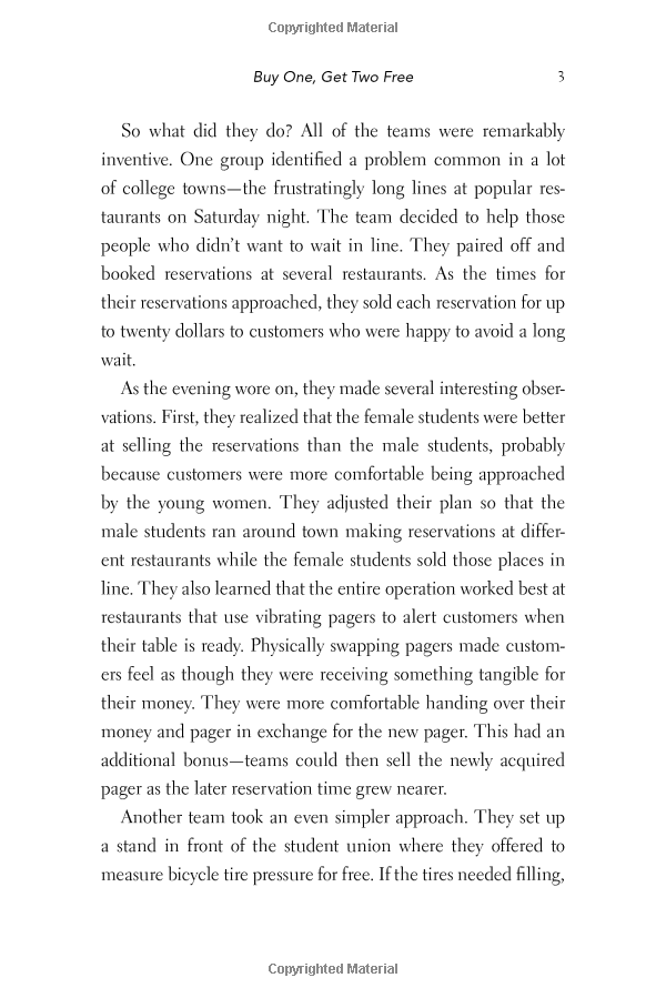 These pages are filled with fascinating examples, from the classroom to the boardroom, of individuals defying expectations, challenging assumptions, and achieving amazing success. Seelig throws out the old rules and provides a new model for reaching our highest potential. We discover how to have a healthy disregard for the impossible, how to recover from failure, and how most problems are remarkable opportunities in disguise.