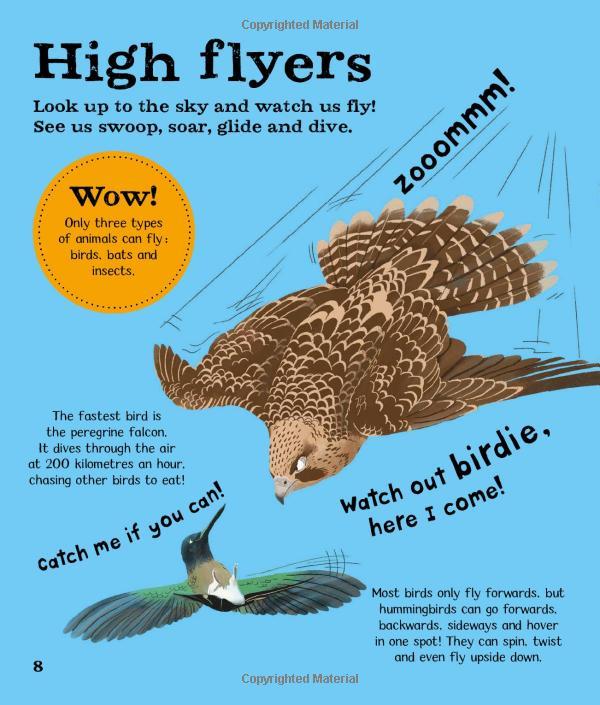 Which bird can fly backward? How do penguins keep warm? Does an ostrich really bury it's head in the sand? Find out the answers to these questions, and lots more, in this book featuring dancing, hooting, running and pecking birds.