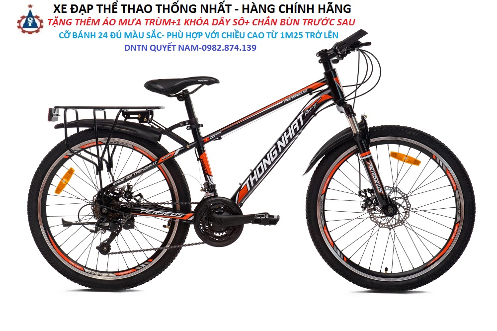 Mua tại TiktokCÁC THÔNG TIN XUẤT XƯỞNG- TEM CHỐNG HÀNG GIẢ-PHIẾU BẢO HÀNH=>ĐẢM BẢO HÀNG CHÍNH HÃNG TỚI TAY NGƯỜI TIÊU DÙNG THÔNG SỐ KỸ THUẬT xe Cỡ khung: 24 inches Khung sườn: Thép chịu lực cao cấp Phuộc: Thép chịu lực cao cấp Tay phanh: Đài Loan Xích: 92 mắt Vành: Hợp kim Lốp: Cao su, 24 inches Pô tăng: Nhôm Cọc yên: Nhôm Yên: Giả da cao cấp Bàn đạp: Nhựa Xuất xứ: Việt Nam Hãng sản xuất: Thống Nhất