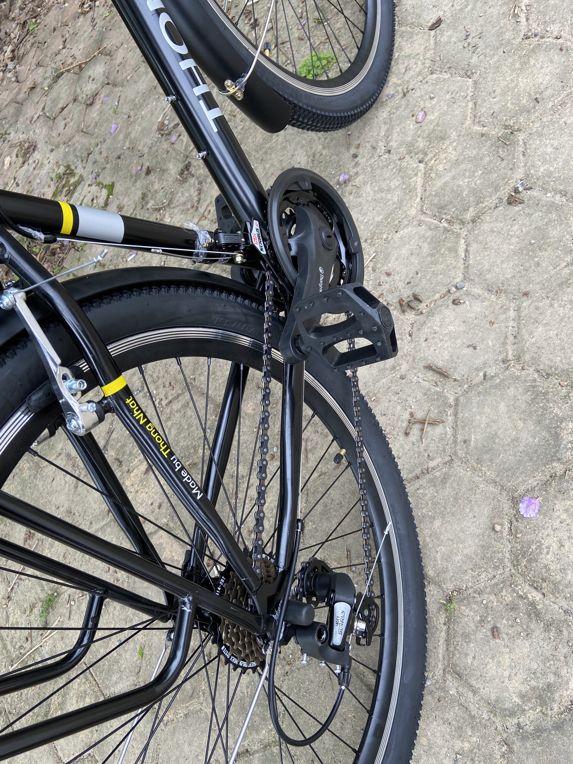 Mua tại TiktokCÁC THÔNG TIN XUẤT XƯỞNG- TEM CHỐNG HÀNG GIẢ-PHIẾU BẢO HÀNH=>ĐẢM BẢO HÀNG CHÍNH HÃNG TỚI TAY NGƯỜI TIÊU DÙNG THÔNG SỐ KỸ THUẬT Cỡ khung: 26" Khung sườn: Thép cao cấp, sơn nước tĩnh điện Màu sắc: Đen mờ Phuộc: Thép Đề trước: Đài Loan Đề sau: Đài Loan Đĩa xích: 3 tầng Xích: 92 mắt Líp: tầng Yên: da bền đẹp Bàn đạp: Nhựa PVC trục thép Xuất xứViệt Nam Hãng sản xuấtThống Nhất Cỡ bánh: 26 inch Kích thước: 1730x600x990 Trọng lượng: 16.5kg