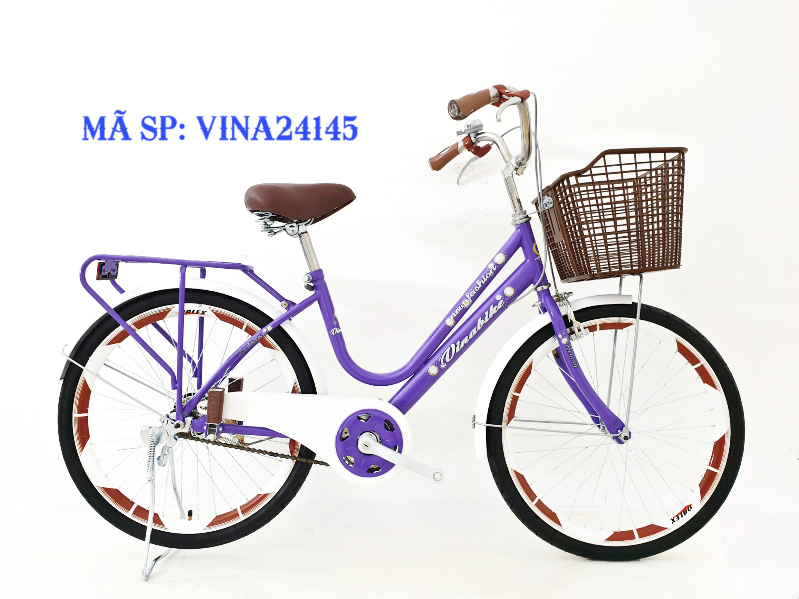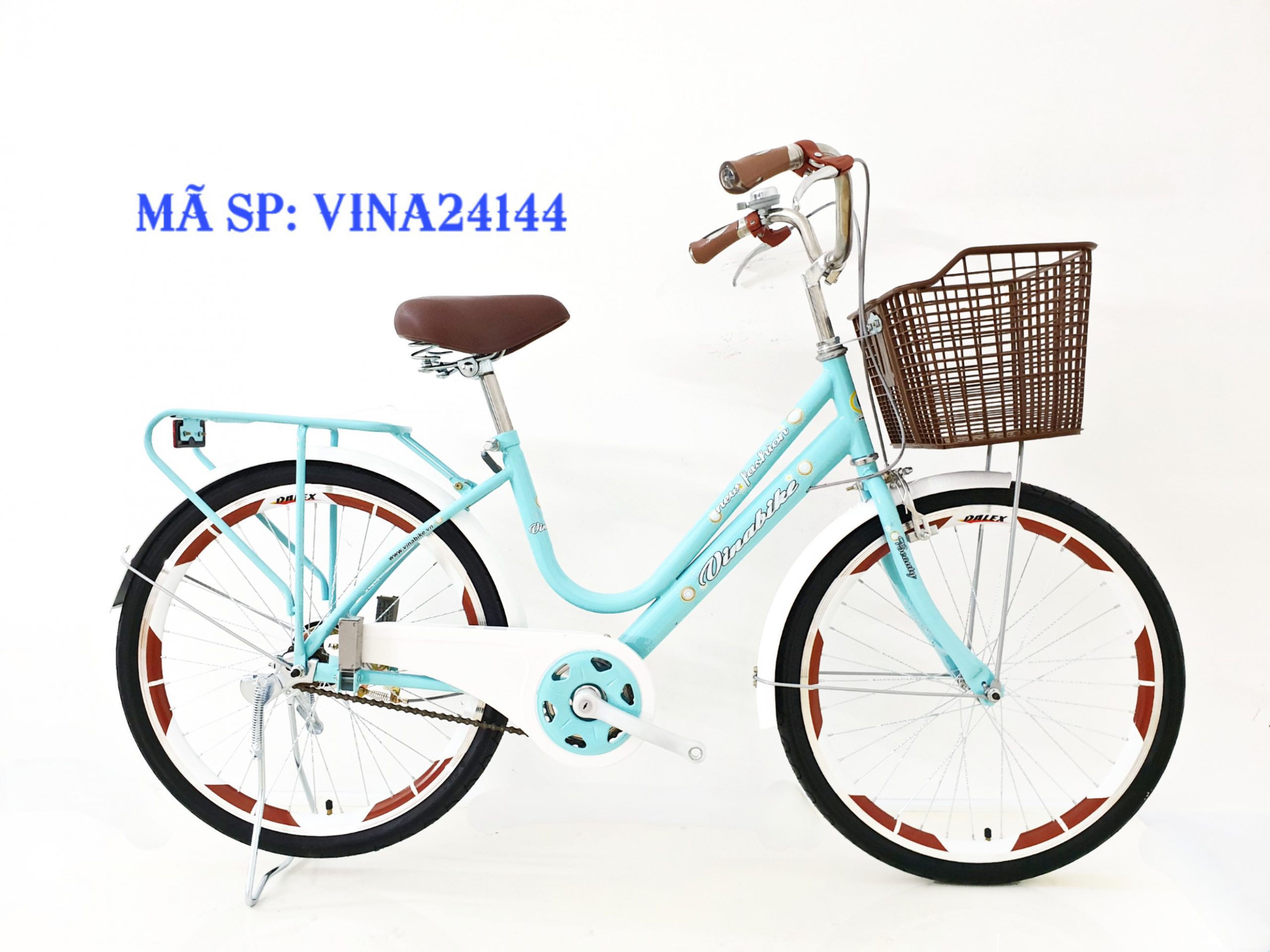 THÔNG TIN CHI TIẾT Khung : thép Bánh xe : kích thước 24 inch Vành : thép Nan hoa : 36 Giỏ xe thiết kế cổ điển : chất liệu nhựa PVC, kích thước 27