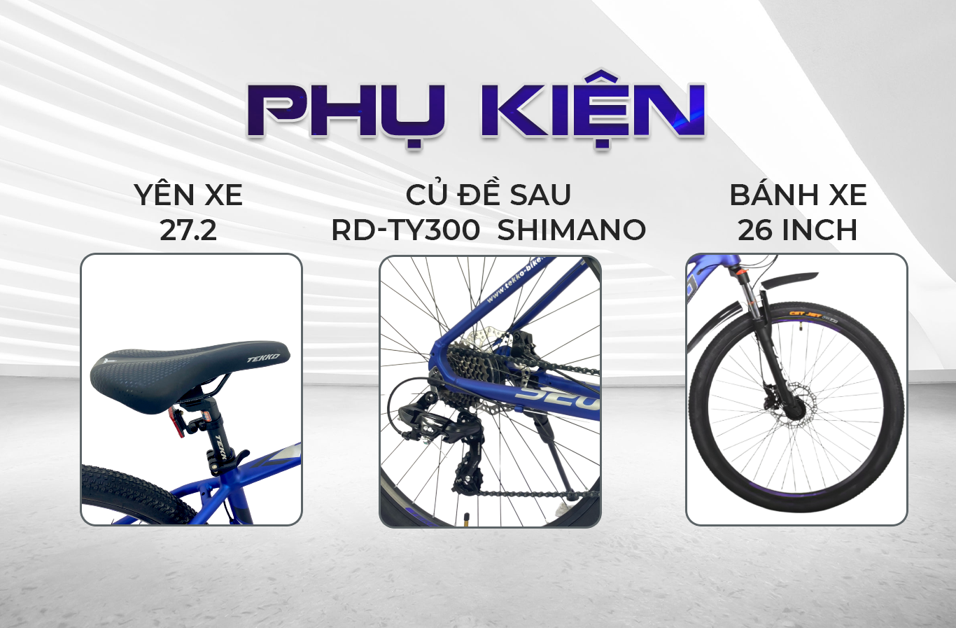 Mua tại TiktokThông số kĩ thuật: Kích thước bánh xe: Lốp 27.5inch I Hợp kim nhôm 2 lớp Khung sườn: Hợp kim nhôm nước sơn tĩnh điện Phụ kiện: Phanh đĩa - Yên da - Bàn đạp nhựa Ghi đông : tay lái thẳng - hợp kim nhôm Cân nặng : 18.5kg Kích thước : 1720 x 630 x 970 mm Tekko sành điệu, mẫu xe sẽ là lựa chọn tuyệt vời dành cho các bạn trẻ có mong muốn leo núi, đạp xe rèn luyện sức khỏe, đam mê vượt thử thách.