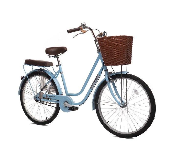 Xe đạp thành phố LD 24″ – 02 2023 được trang bị thêm nhiều phụ kiện hữu ích như giỏ xe, đèn phản quang, lưỡi chắn vành, chuông, bàn đạp,…