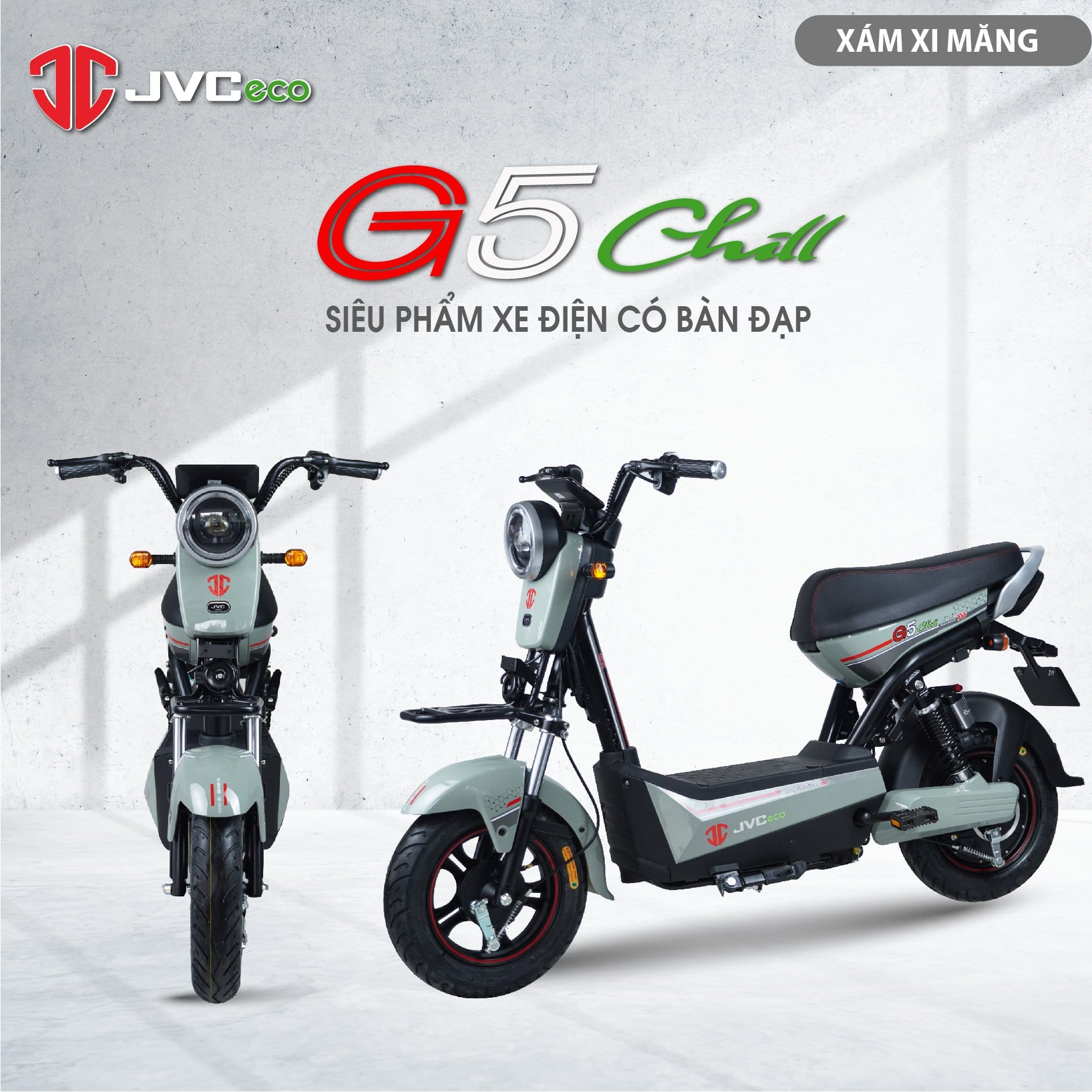 Mua tại TiktokJVC G5 CHILL XE ĐIỆN CÓ BÀN ĐẠP ️ JVC G5 CHILL được thiết kế theo phong cách HIỆN ĐẠI, TINH TẾ mang tới sự tự tin cho người lái ƯU ĐIỂM NỔI BẬT CỦA JVC G5 CHILL Bàn đạp trợ lực hỗ trợ hành trình di chuyển Bộ tem mới thiết kế THỜI TRANG Đèn pha dạng tròn góc sáng rộng hơn Tay ga, công tắc, tay phanh cao cấp đến từ thương hiệu Wuxing Đồng hồ dẹt hiển thị thông minh Yên xe êm ái in dấu ấn logo JVC Động cơ mới kết hợp với bộ điều khiển không dây Ắc quy được bổ sung thanh giằng bình chắc chắn tuyệt đối, tháo lắp dễ dàng hơn Vành trước nhập khẩu có thiết kế riêng biệt đồng bộ với động cơ Giam xóc sau nâng cấp chất lượng, bảo hành 12 tháng Động cơ và khung xe bảo hành 36 tháng Bình ắc quy bảo hành 18 tháng
