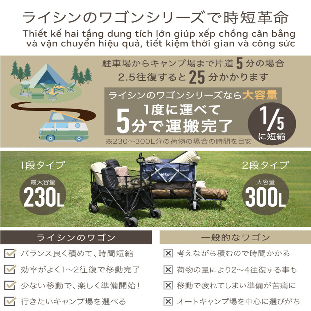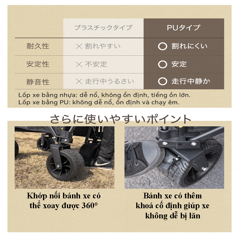 ✨Xe kéo dã ngoại 2 tầng ngoài trời du lịch cắm trại, picnic đa năng bánh xe rộng có khóa cố định dung tích 300l gấp gọn được camping