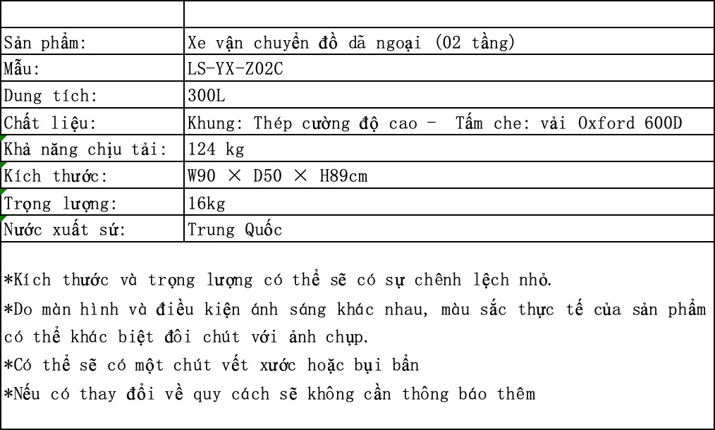Mua tại TiktokTHÔNG TIN SẢN PHẨM: - Thương hiệu: Campingmoon - Xuất xứ: Trung Quốc - Kích thước sử dụng: Kéo dài: 60 x 31.5 x 23.6 cm, thu gọn: 38 x 31.5 x 23.6 cm -
