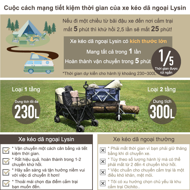 ✨Xe kéo dã ngoại, ngoài trời, du lịch, cắm trại, picnic, đa năng bánh xe rộng có khóa cố định dung thích 230l gấp gọn
