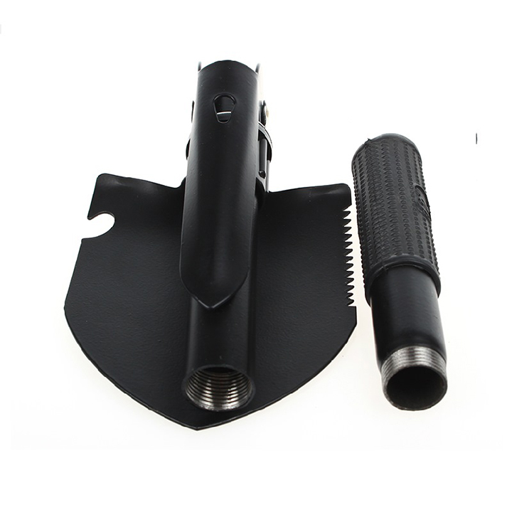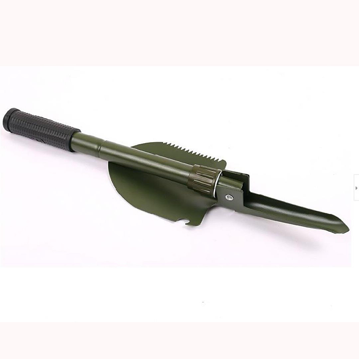 Xẻng đa năng du lịch, làm vườn gấp gọn Là một người chuyên đi phượt hay đi du lịch đường xa chắc hẳn sẽ không thể thiếu bộ dụng cụ này. Bộ cuốc xẻng đa năng quân đội cao cấp với thiết kế thông minh có thể tháo lắp gọn lại để bỏ vào balo cóp xe tiện mang theo bất cứ đâu. Xẻng đa năng với rất nhiều chức năng gói gọn trong 1 dụng cụ: cuốc xúc đào đất, chặt cây, cưa cành, chẻ củi, đóng cọc, cắt cây, chiên trứng, khui bia, đánh lửa, mở vít, tự vệ, Xẻng dã ngoại được thiết kế từ chất liệu sắt nguyên chất, lớp ngoài có phủ lớp chống rỉ sét, vừa bảo vệ xẻng, vừa mang lại tính thẩm mỹ cho vật dụng. Tay cầm thoải mái, có lớp cao su dập nổi giúp cầm chắc chắn hơn. Trên tay cầm có la bàn để định vị phương hướng tránh bị lạc, hữu dụng trong nhiều trường hợp khẩn cấp như khi bị lạc hoặc gặp nguy hiểm. Do đó sản phẩm còn được gọi là xẻng sinh tồn. Xẻng đa năng có thể tháo cán ra bằng cách vặn khớp và gập lại, tương tự ngược lại khi tra vào sử dụng. Xuất xứ: Việt Nam Chất liệu: Sắt Kích thước:
