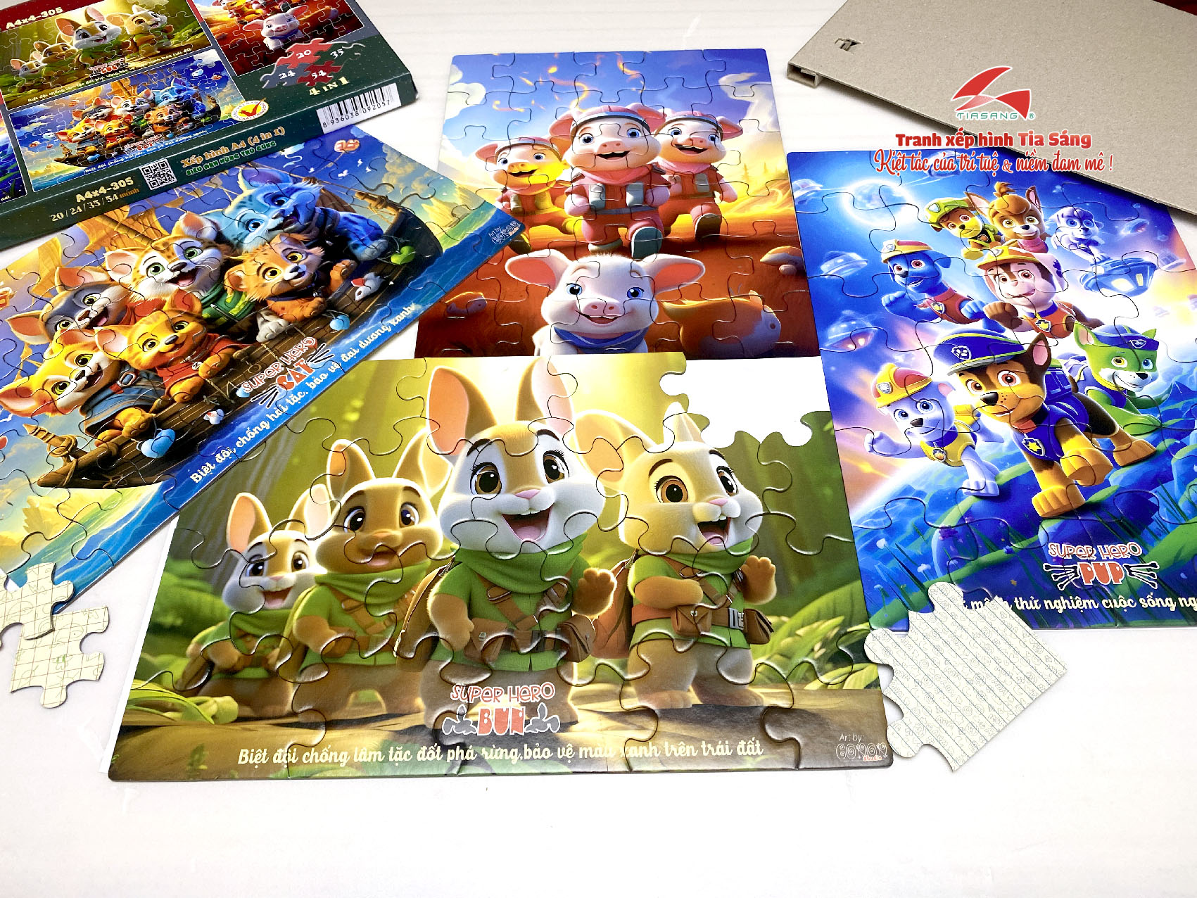 ✨Xếp hình A4 (4 trong 1) Super_Hero_Pet ( Siêu Anh Hùng Thú Cưng)