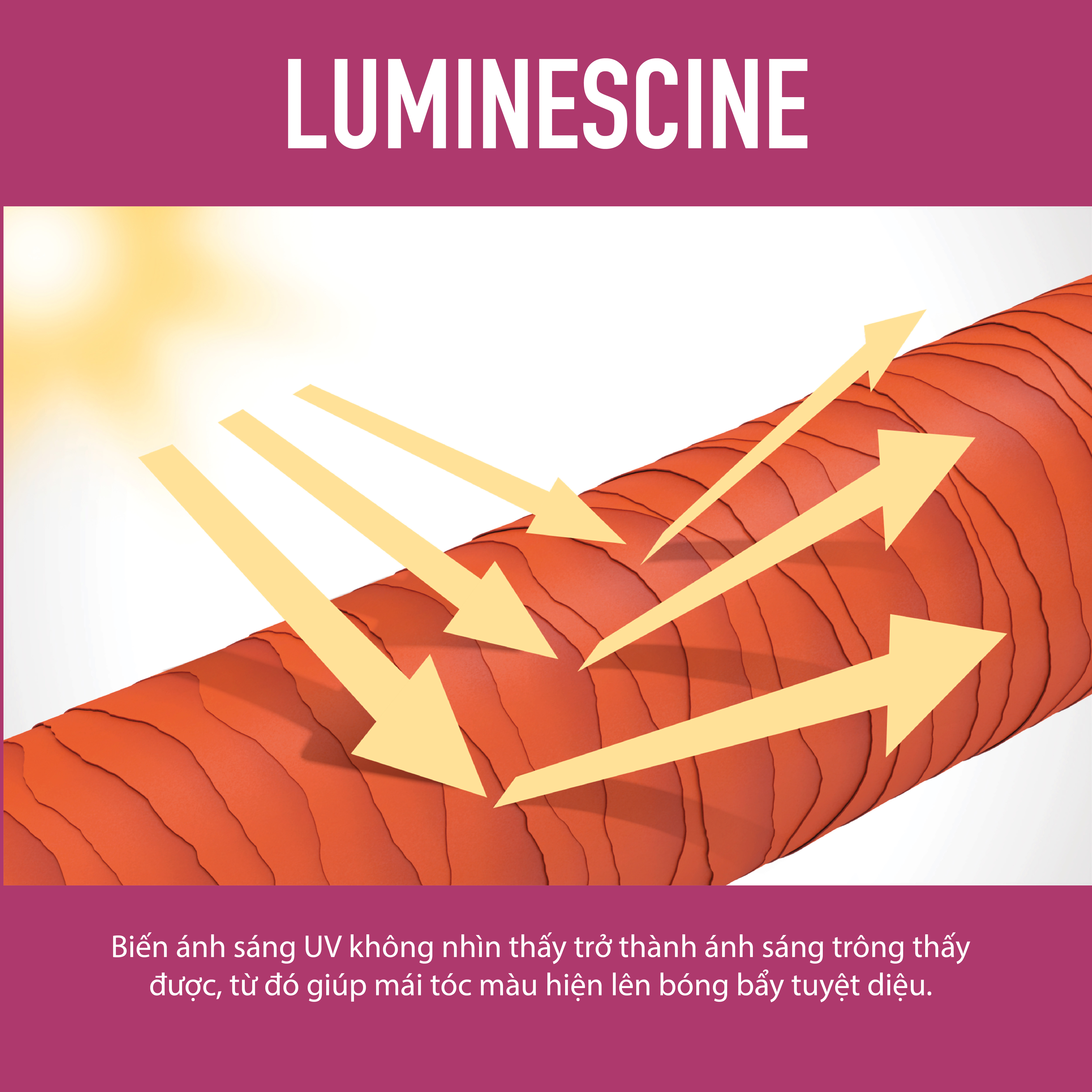 - Công nghệ Luminescine biến ánh sáng UV không nhìn thấy trở thành ánh sáng trông thấy được, từ đó giúp mái tóc màu hiện lên bóng bẩy tuyệt diệu.
