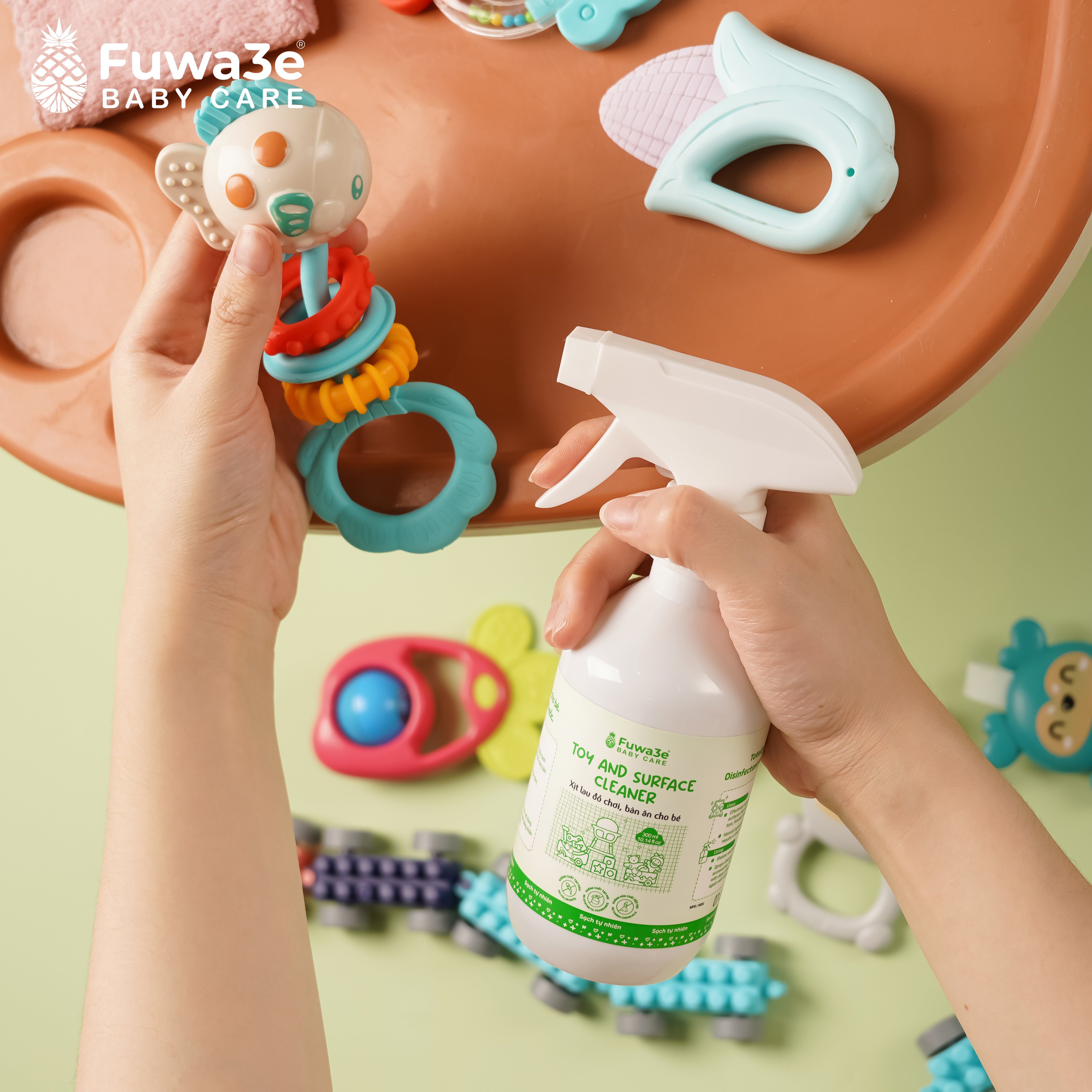 Hiểu được điều này, Fuwa3e đã sản xuất dòng nước rửa đồ chơi, lau bàn cho Fuwae3 dành riêng cho bé. Sản phẩm được sản xuất với nguyên liệu hoàn toàn tự nhiên với thành phần chính là Enzyme sinh học lên men từ vỏ dứa. Nước rửa đồ chơi Fuwa3e mang đến tính năng vượt trội từ Enzyme sinh học như khử khuẩn, làm sạch, khử mùi hôi…