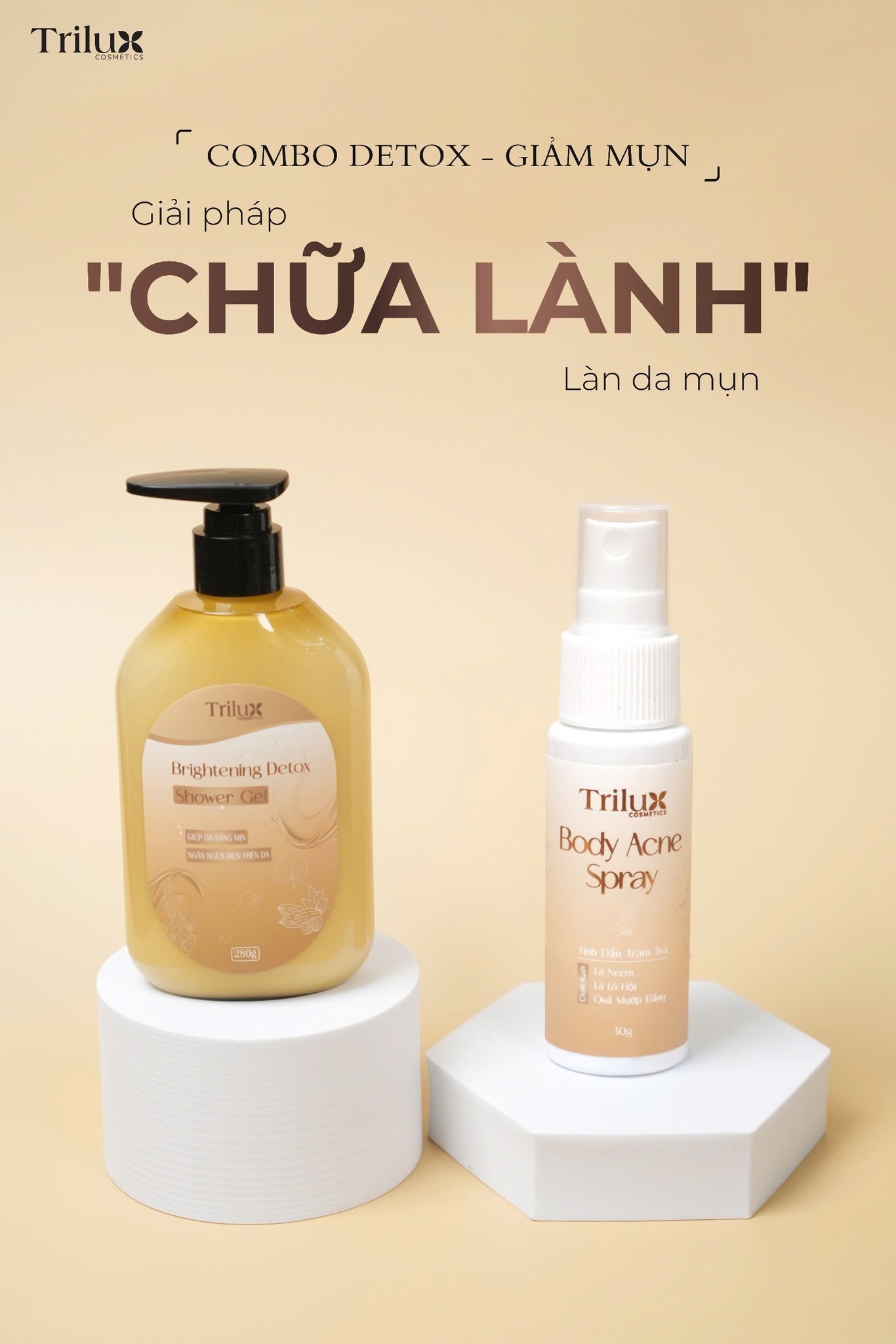 Mua tại TiktokTHÔNG TIN SẢN PHẨM: Xịt Mụn Body Trilux: Mỗi lần xịt là một lần làn da được gi.ải cứ.u khỏi tình trạng mụn. Với sự kết hợp của BHA, tinh dầu tràm trà, và chiết xuất lá neem, sản phẩm giúp làm sạch lỗ chân lông, hỗ trợ gi.ảm viêm mụn và làm dịu da. Xịt mụn này hỗ trợ mờ thâm, giúp da trở nên đều màu và khỏe mạnh hơn. THÀNH PHẦN SẢN PHẨM: