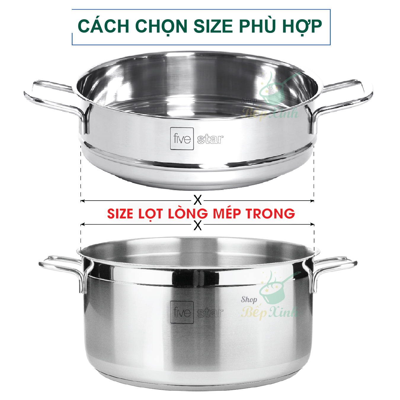 Xửng hấp inox 430 FiveStar Standard 2 quai không nắp ( 24cm / 26cm / 28cm / 30cm / 32cm ) KÍCH THƯỚC BÊN SHOP LÀ TÍNH VÀNH TRONG MIỆNG NỒI , CHẢO , KHÔNG
